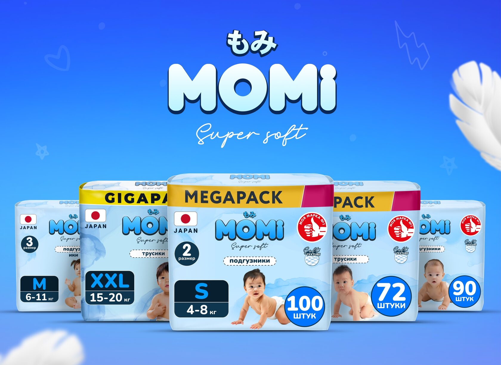 Что объединяет все подгузники MOMI Super Soft? Их неизменное качество и забота о малышах: